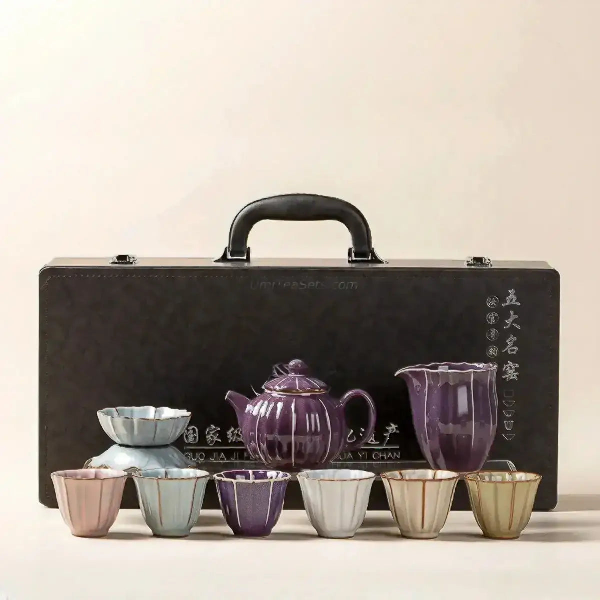 • تم تصميم طقم الشاي بأناقة وتناسب جيد. الطلاء غني وناعم وطبيعي، لامع كالعقيق.