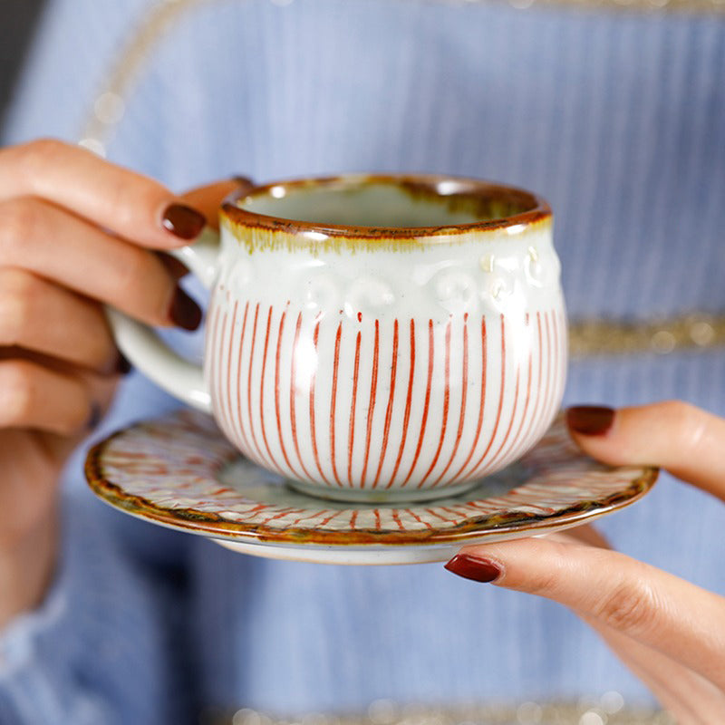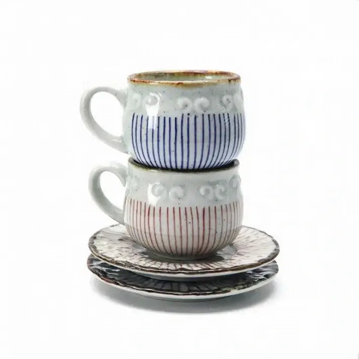 (Set of Two) Japanese Tea Cup With Handle And Saucer