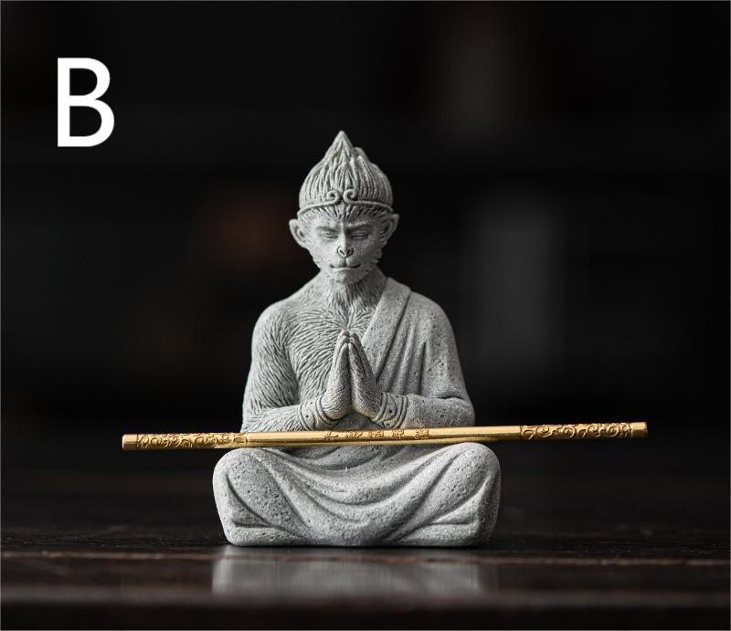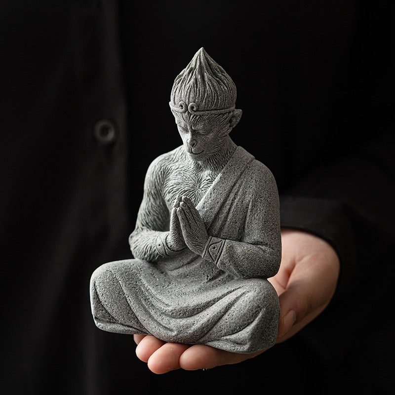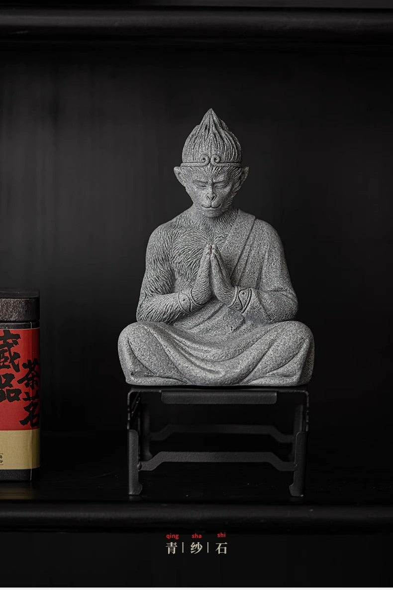 The prototype of the blue sandstone Wukong ornament comes from Black Myth: Wukong. Wukong (Monkey King) is a classic shape among tea pets. It is loved by people for his agility and intelligence, and he is a symbol of wisdom, courage, diligence and righteousness. The story of "Black Myth: Wukong" tells a story full of philosophical thinking and rebellious spirit. The story takes the Monkey King Sun Wukong as the protagonist, and reveals a deep discussion about good and evil, freedom and bondage through his perspective. Wukong dares to resist oppression and pursue freedom. In the story, Sun Wukong leading people to resist oppression together. This process is full of challenges to authority and pursuit of freedom.