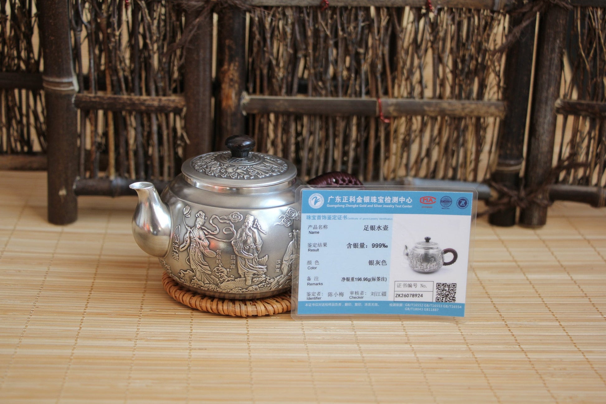 Pure Silver 999 "Eight Immortals Cross the Sea" Teapot * 210ml