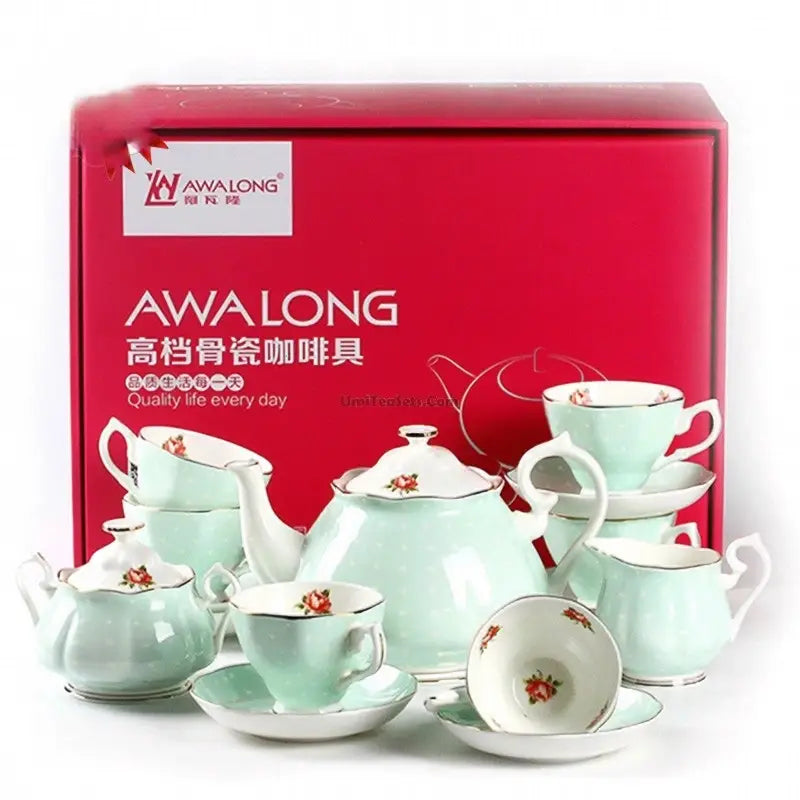 Light Green Dotted Bone China Tea Set