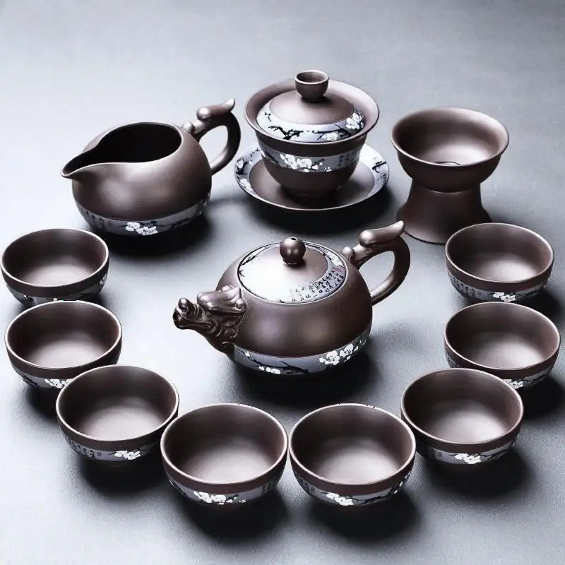 Includes: 1 Teapot, 8 Tea Cups, 1 Fair Cup, 1 Gaiwan, 1 Tea Strainer.