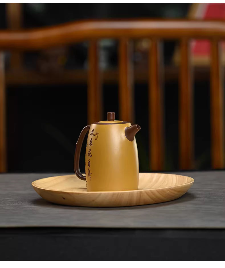 The Gao Jing Lan teapot is a masterpiece of Yixing Zisha artistry, blending the architectural strength of the classical "High Well Curb" form with the delicate beauty of traditional mud-painting. Crafted from authentic Wen-Ge Purple Clay (文革紫泥), a sought-after aged ore known for its superior breathability and rich, dark undertones, this pot is designed to "season" beautifully over time, developing a unique natural luster.