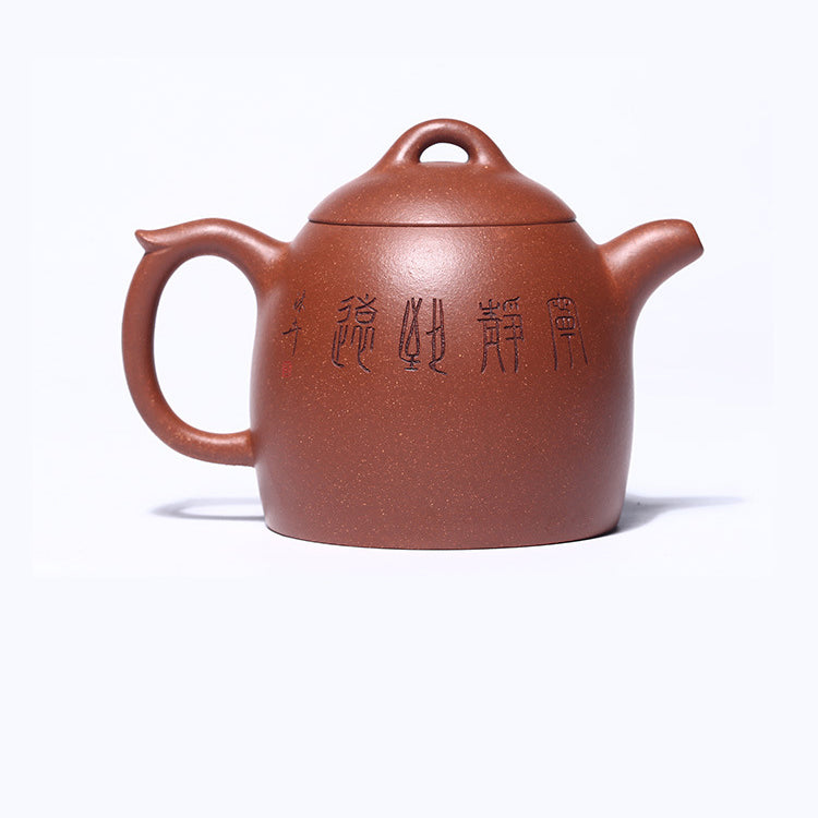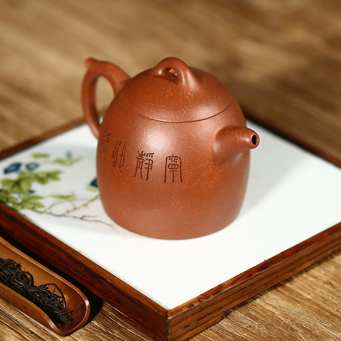 This classic Yixing pot shape is admired for its calm, powerful presence. The design is clean and steady, with a bridge-style knob that echoes the pot’s overall lines. The Qin Quan shape is known for its upright character, ancient charm, and strong visual weight—qualities that tea collectors call “the king of pots.”