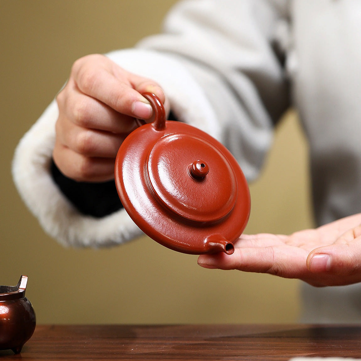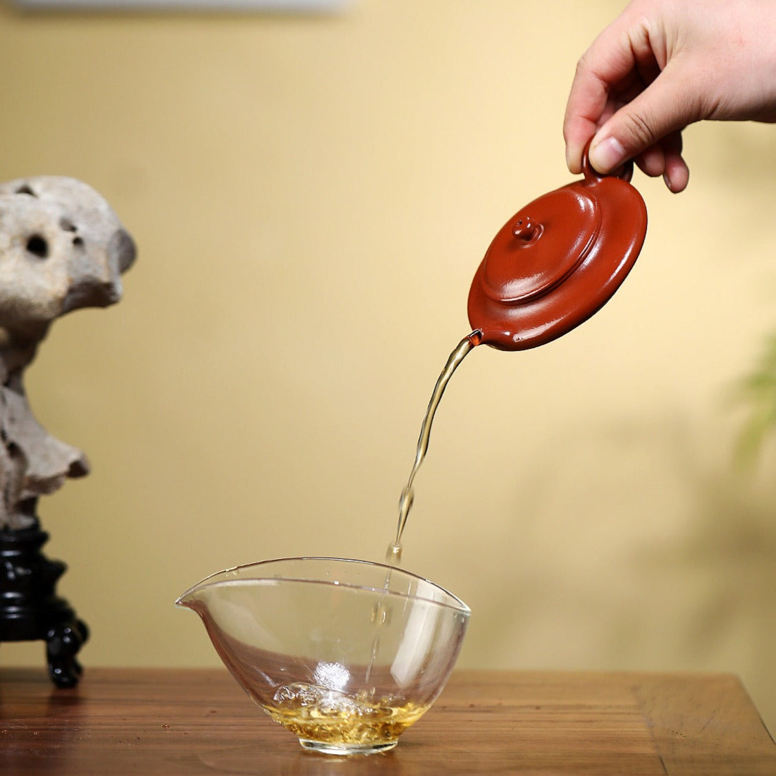 The secret of Yixing teapots lies in the unique mineral-rich clay. Artisans carefully select and blend multiple local rocks, grind them into fine powder, and craft each teapot by hand. The natural colors—vermilion, purple, or duanni gold—come from the clay itself, not glazes or paints, resulting in subtle, earthy tones that reflect understated elegance.
