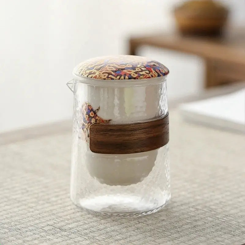 Glas- und Porzellan-Reh-Reise-Teeset