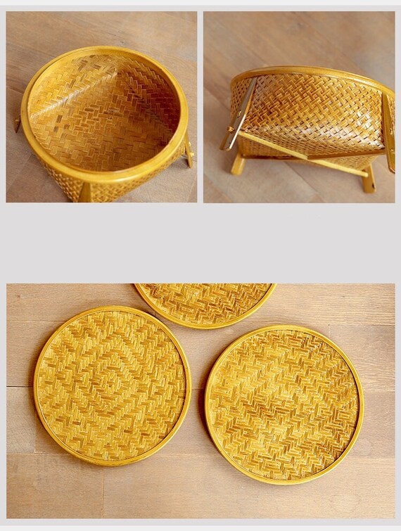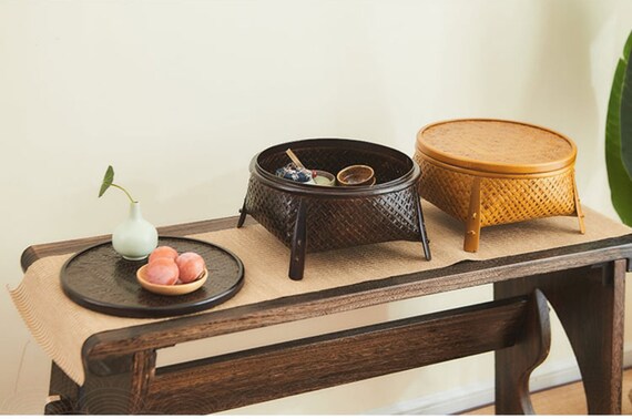 Mesa de almacenamiento de té china hecha a mano con tejido natural de bambú, obra de arte, mesa de té dorada, decoración para el hogar, escritorio estilo zen chino