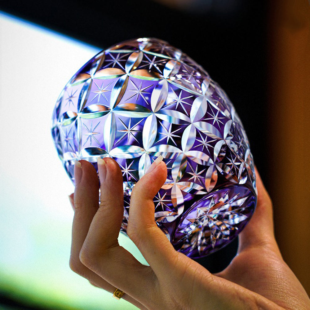 江户切子是日本最著名的玻璃工艺。“切子”意为“雕刻玻璃”,“江户切子”即“江户城雕刻的玻璃”。江户切子以其在蓝色、红色或其他彩色玻璃上雕刻的精细图案闻名。其他典型的日本设计还包括菊花或麻叶等植物图案。